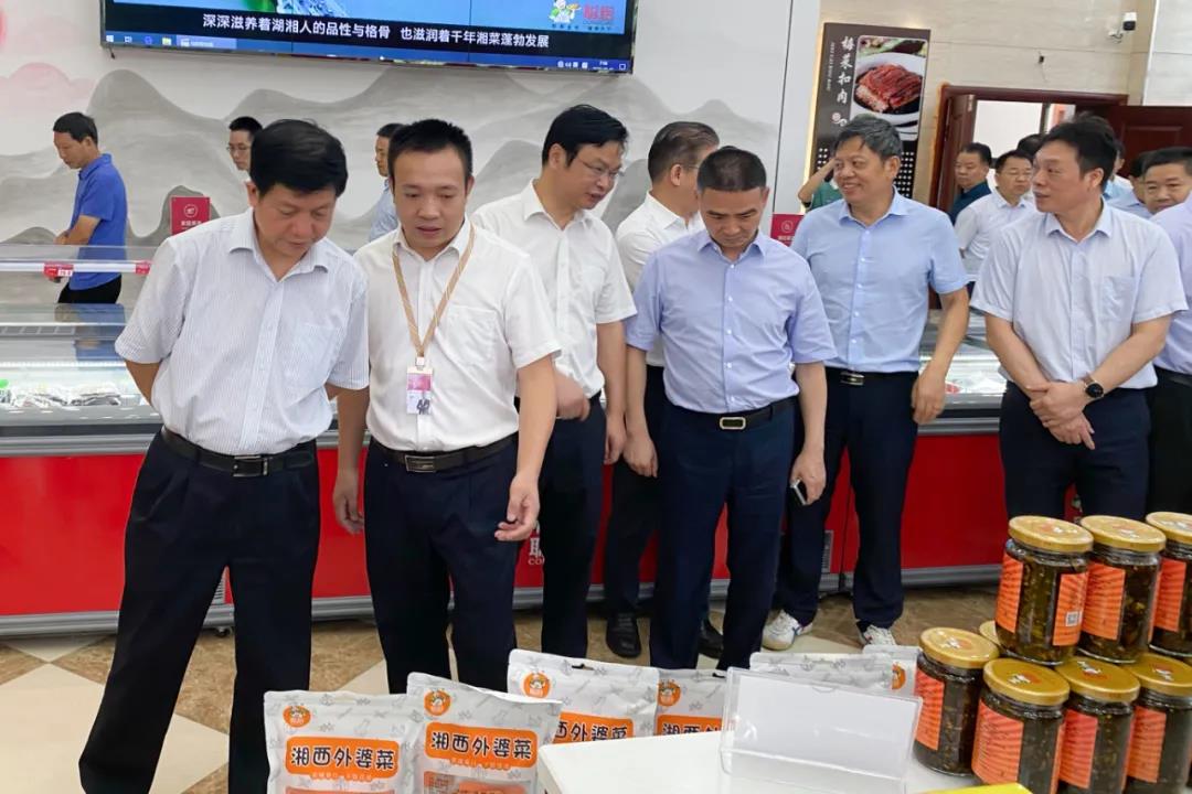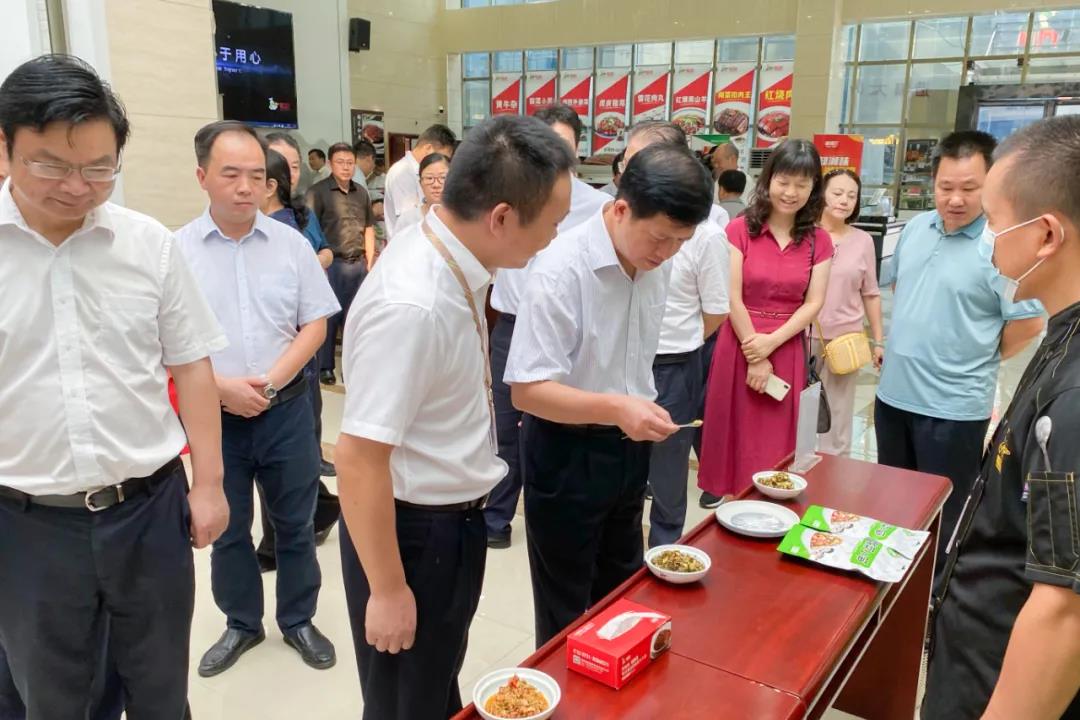 在聰廚產(chǎn)品展示館,張鵬飛介紹了聰廚在農(nóng)副產(chǎn)品合作、產(chǎn)品原材料本地化、農(nóng)產(chǎn)品加工、產(chǎn)銷對接等情況;詳細(xì)介紹了聰廚蔬菜項目部的相關(guān)產(chǎn)品:傳統(tǒng)經(jīng)典菜肴-湘西外婆菜、休閑食品-佐餐系列產(chǎn)品,聰廚蔬菜生產(chǎn)基地生產(chǎn)出的無沙梅干菜,與農(nóng)民合作的農(nóng)副產(chǎn)品以及正在壇制的卜豆角、酸菜等蔬菜制品;并邀請湖南省農(nóng)村農(nóng)業(yè)廳廳長袁延文一行領(lǐng)導(dǎo)品嘗了聰廚鮮香下飯的剁椒蘿卜、老壇下飯菜、酸菜小筍等休閑產(chǎn)品。