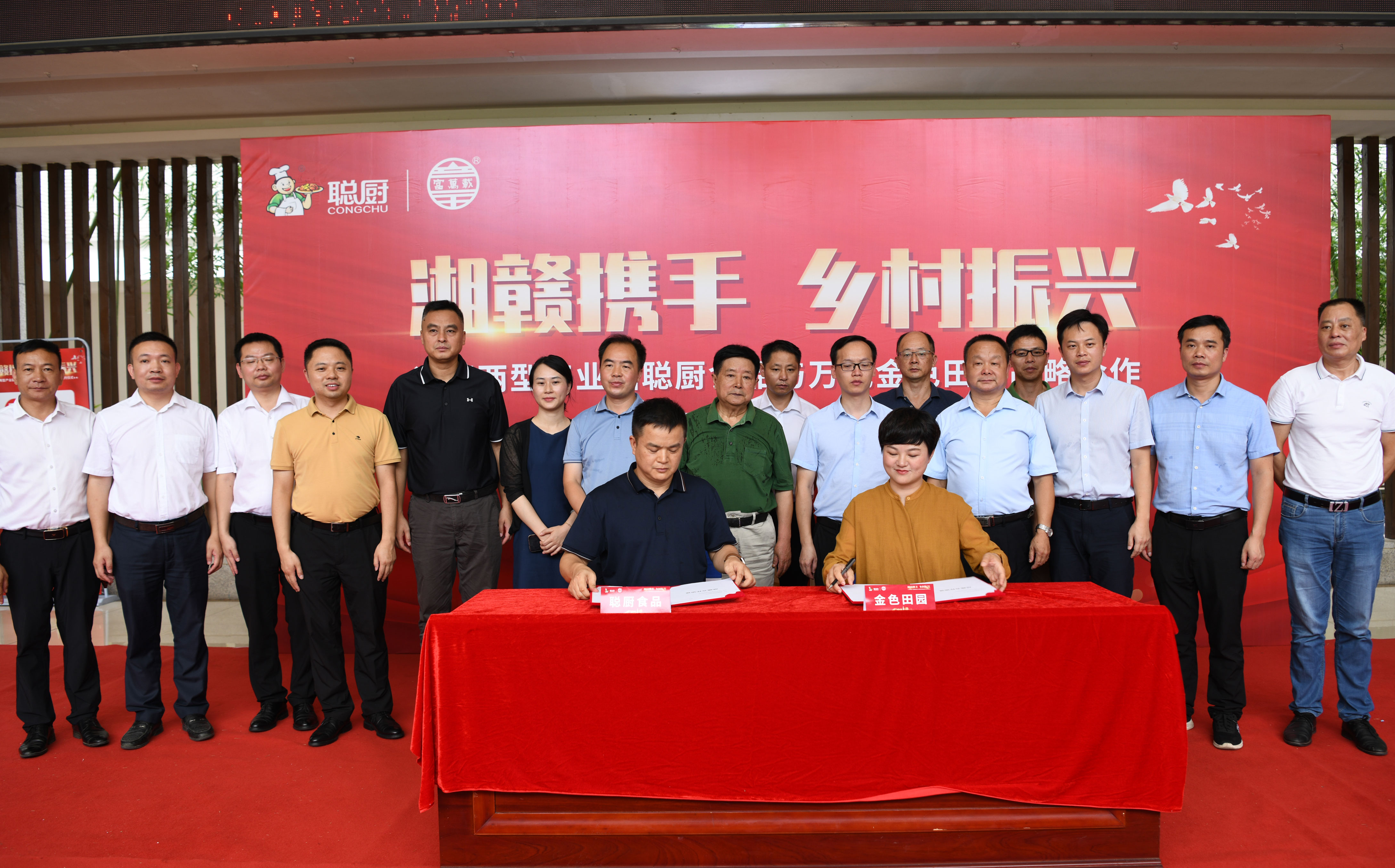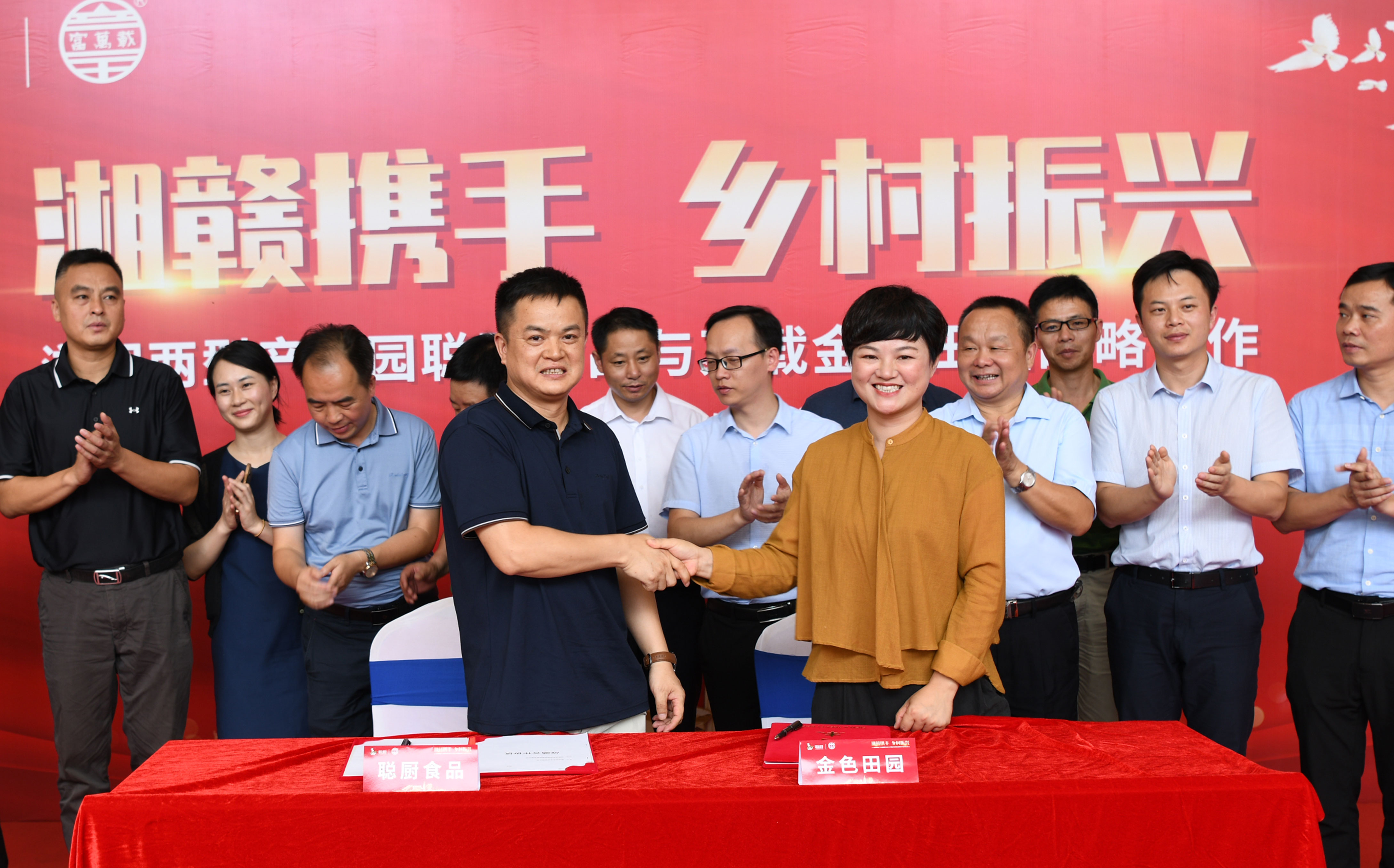 最后,唐步聰和黃麗分別代表湖南新聰廚食品有限公司和江西萬載金色田園電商扶貧有限公司在合作協(xié)議上簽字,所有現(xiàn)場領(lǐng)導(dǎo)和嘉賓一同見證了這個(gè)象征湘贛邊鄉(xiāng)村振興新征程正式起航的歷史時(shí)刻。