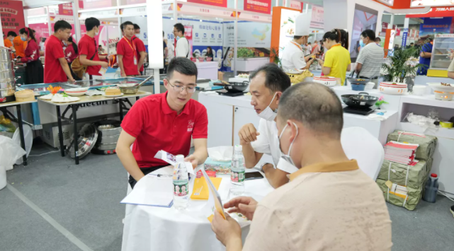 ▲ 聰廚銷售精英正在和客戶洽談合作細節(jié)